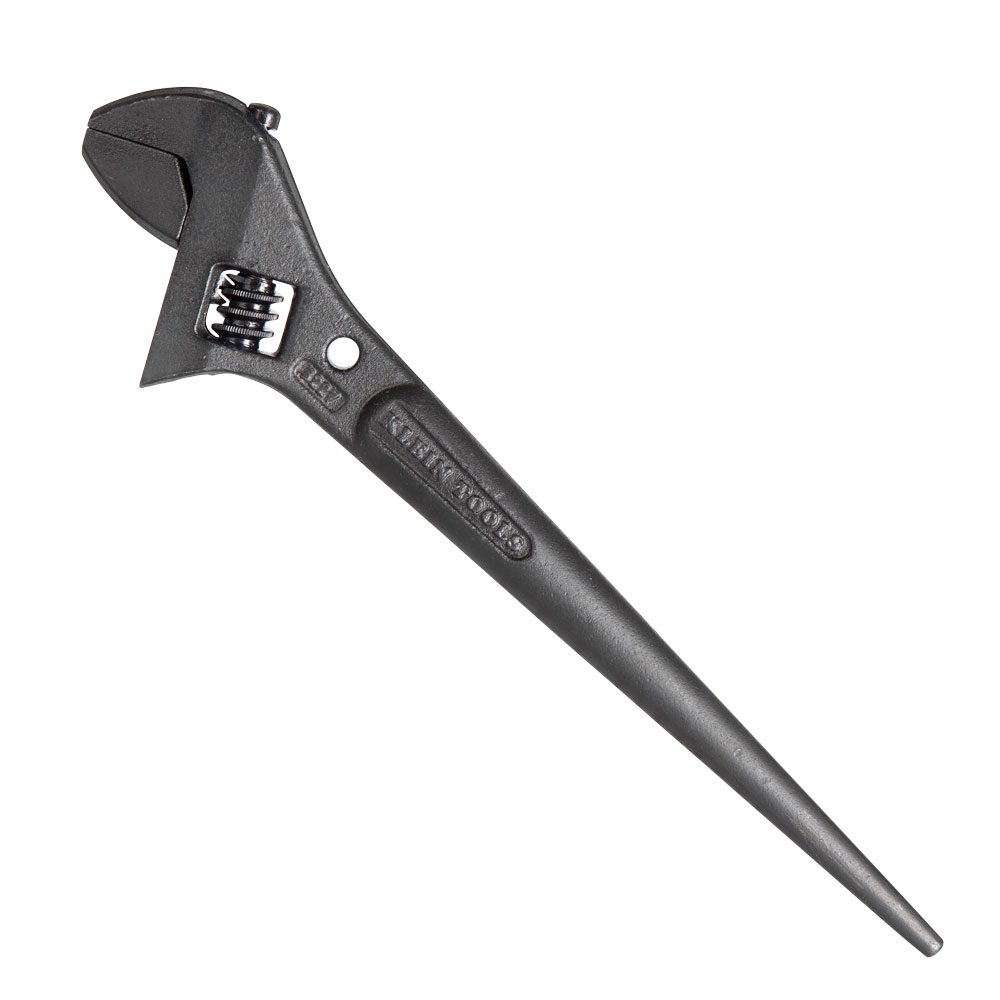 There is no need to carry several fixed-size spanners when you have a Klein Tools' Adjustable-Head Construction Spanner. The extra-wide jaw fits nuts and bolts up to 1-7/16''. Made in the USA and forged from durable, select alloy steel. The continuous-taper handle helps align bolt and rivet holes.