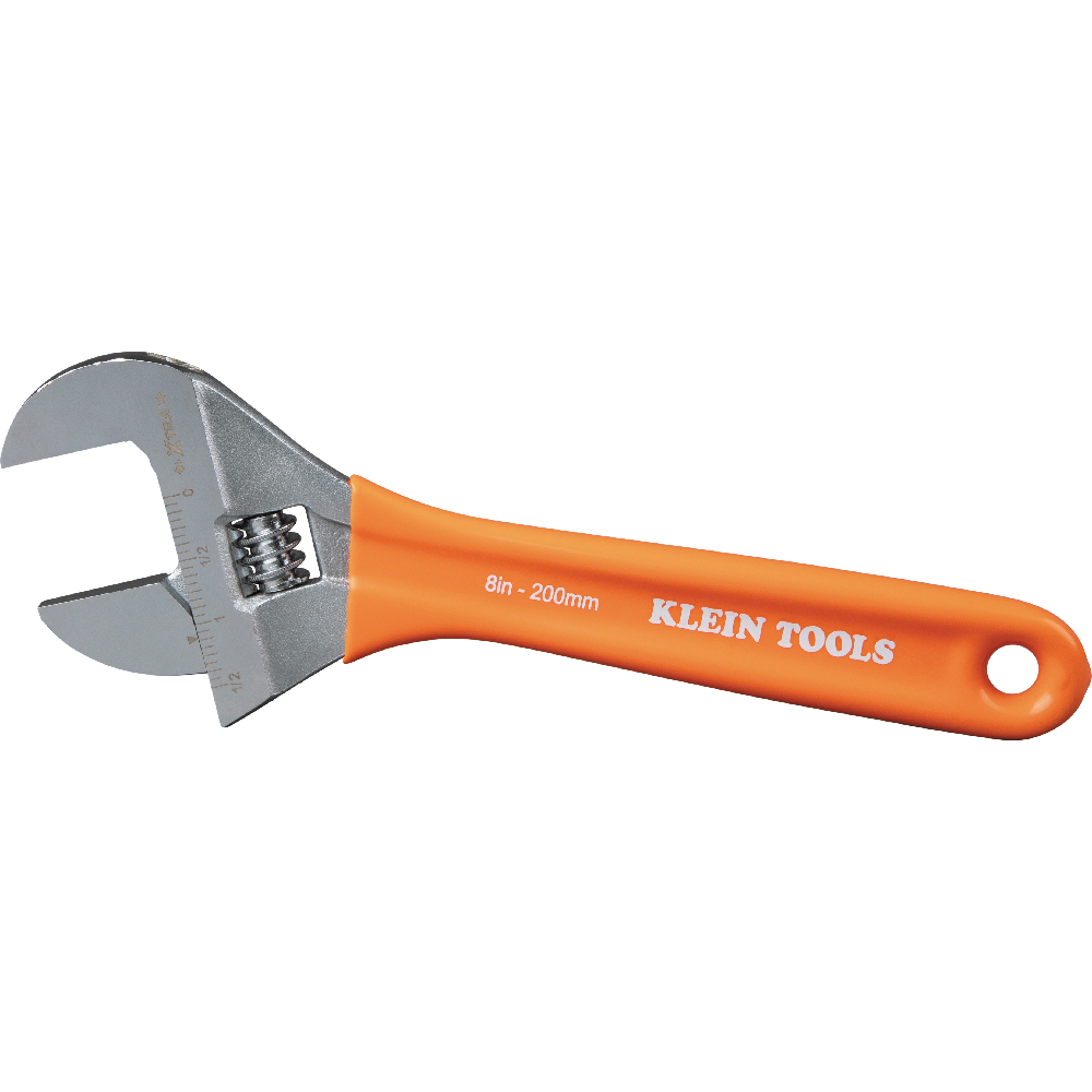 Klein Tools' 8-Inch Extra-Wide Jaw Adjustable Spanner is made of forged, heat-treated alloy steel for maximum strength and light weight. Jaws are precision-machined to ensure smooth operation. Contoured, plastic-dipped handles make them easy to grip and comfortable to use.