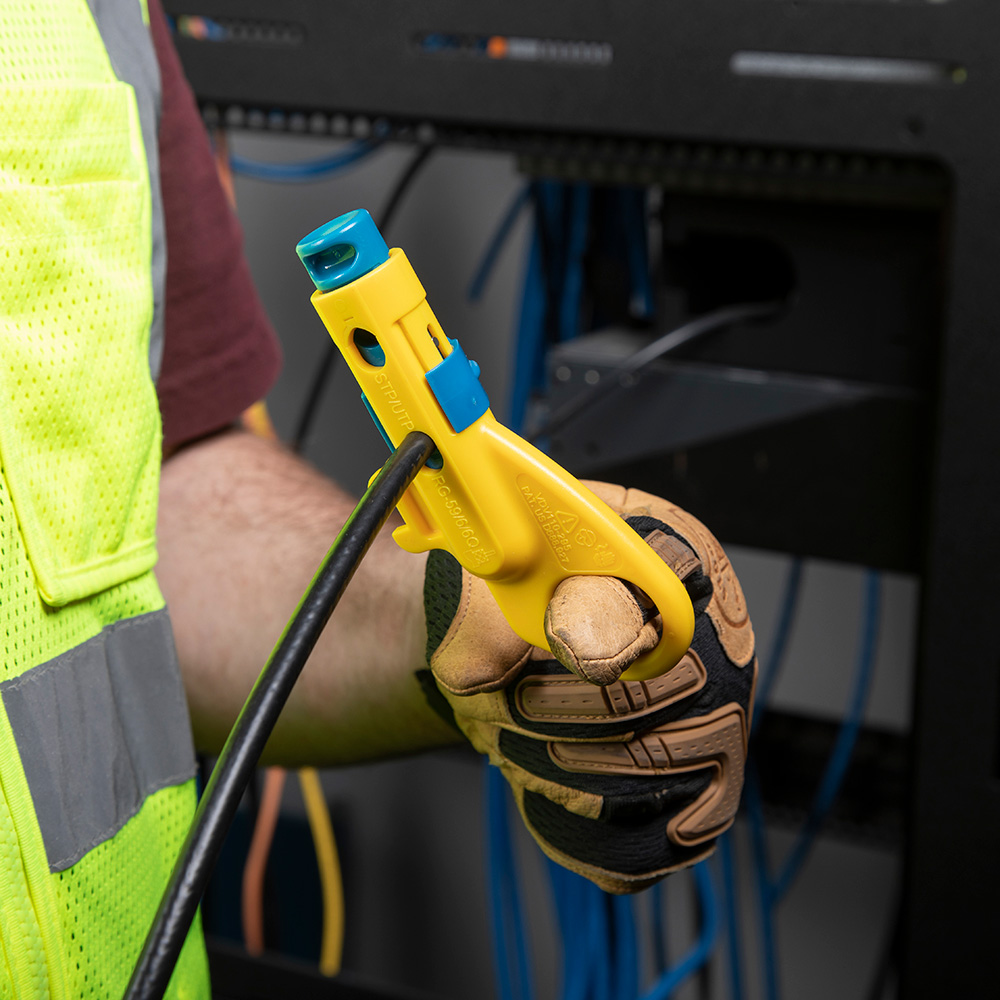 • Easily and cleanly strips both coaxial and twisted-pair cable including RG59, RG6/6Q, CAT3, CAT5, CAT6 and 6A sizes