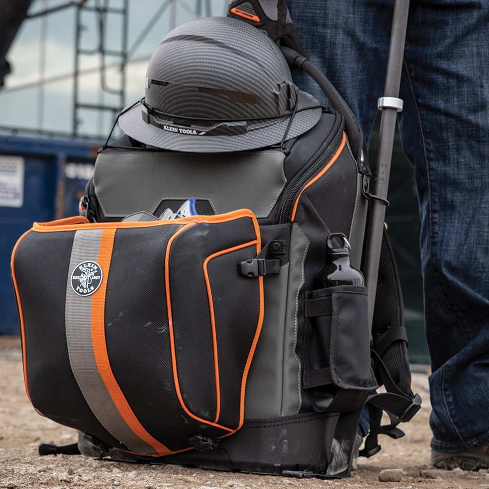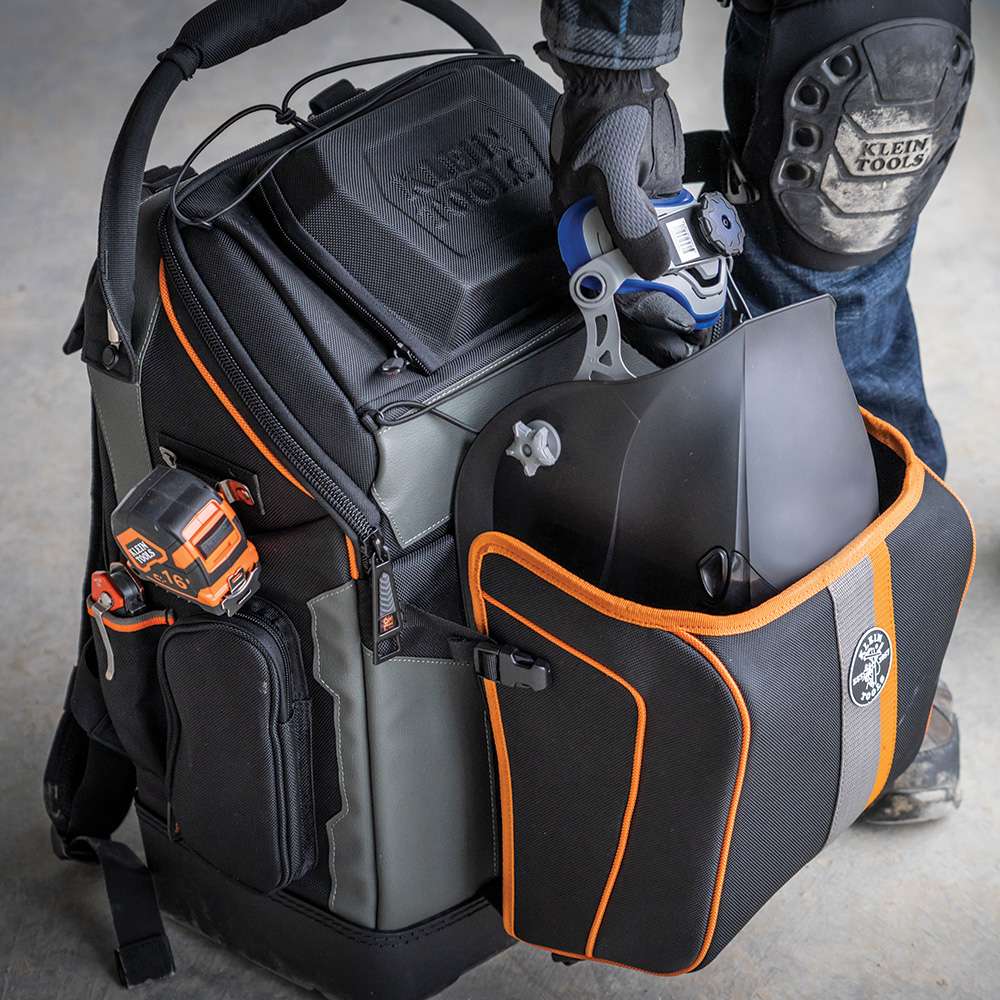 - Backpack has an orange interior for easy tool visibility
